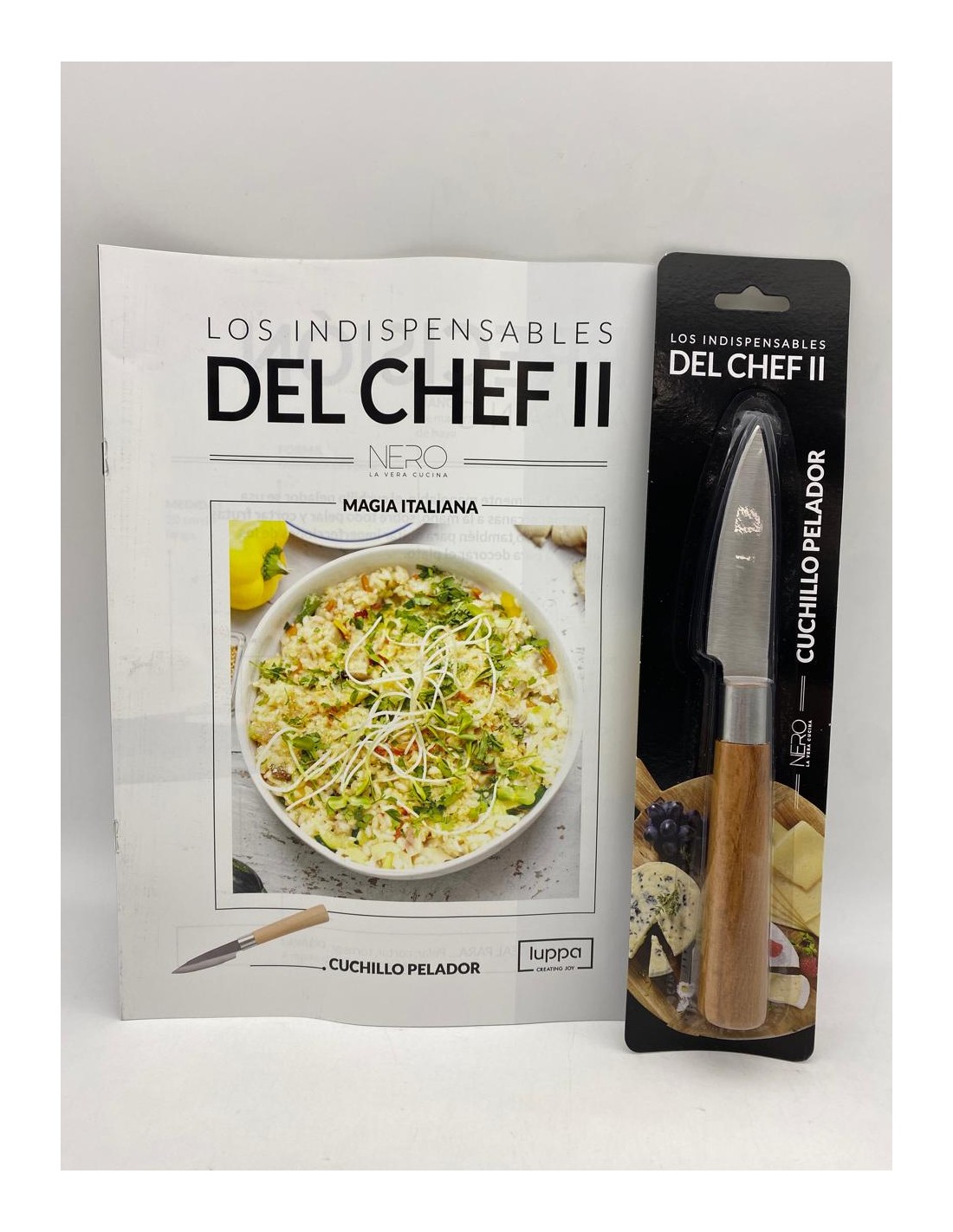 Contiene: 1 Fasiculo con receta de los indispensables del chef + Cuchillo pelador .