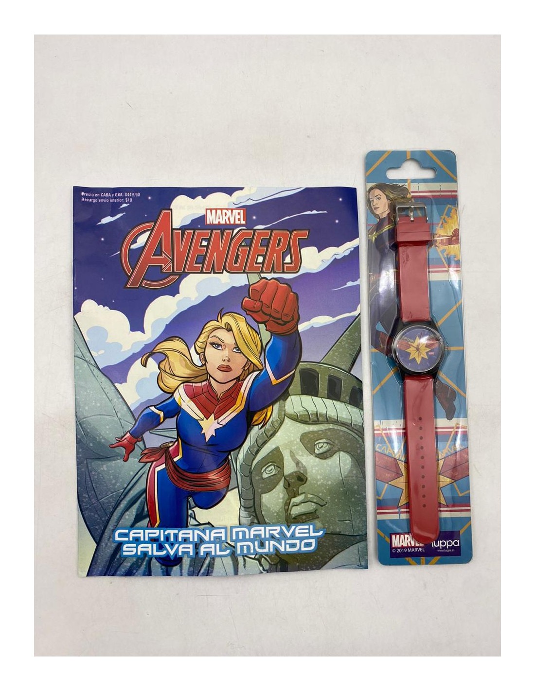 Reloj Marvel de Capitana Marvel, con diseño vibrante y detalles inspirados en la heroína. Correa ajustable y esfera resistente, ideal para fanáticos de todas las edades. Un accesorio funcional y lleno de estilo.