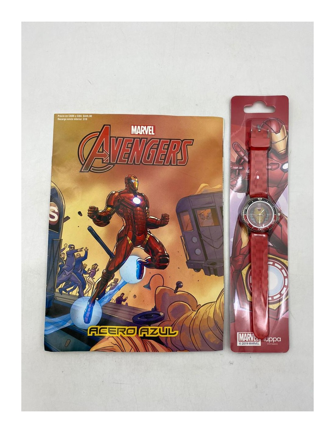 Contiene un comic y un reloj a pila .