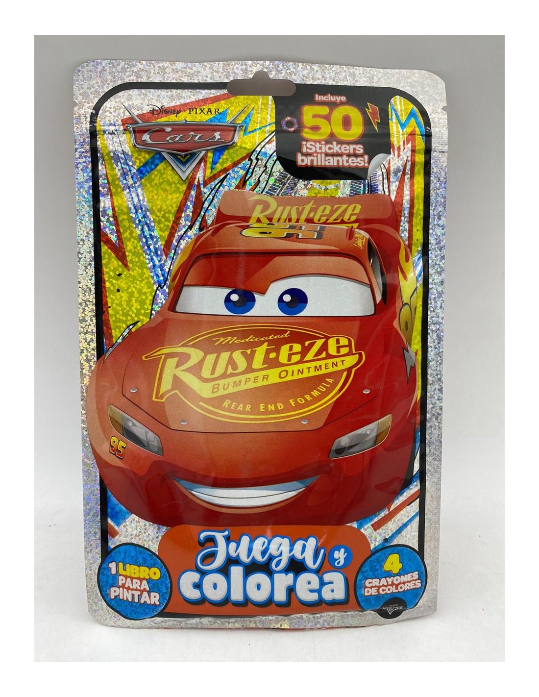 Contiene : 1 Libro para pintar, 4 crayones y 50 Stickers Brillantes .