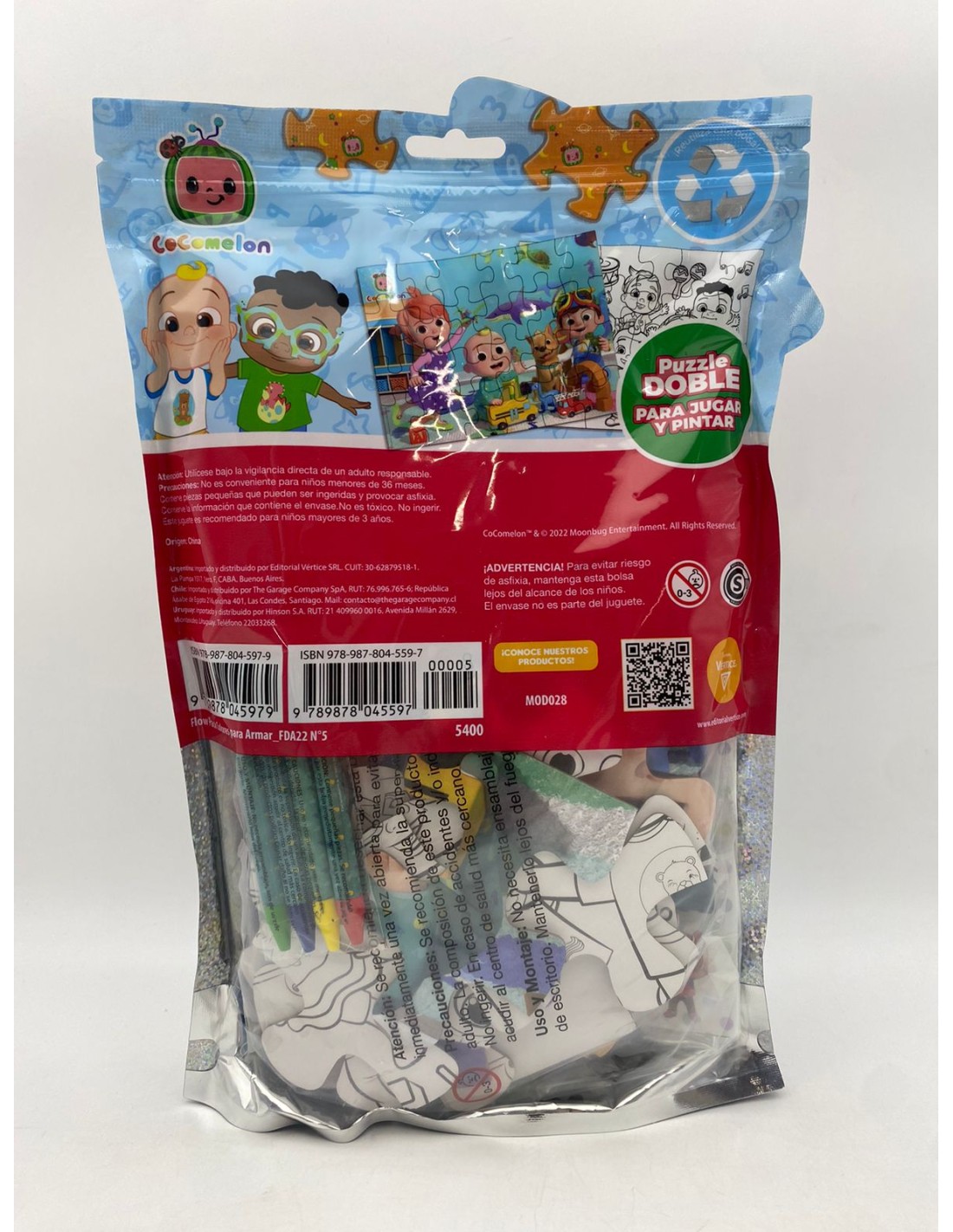 Contiene: 1 Libro para Pintar, Puzzle doble de 24 piezas, 4 crayones y stickers .